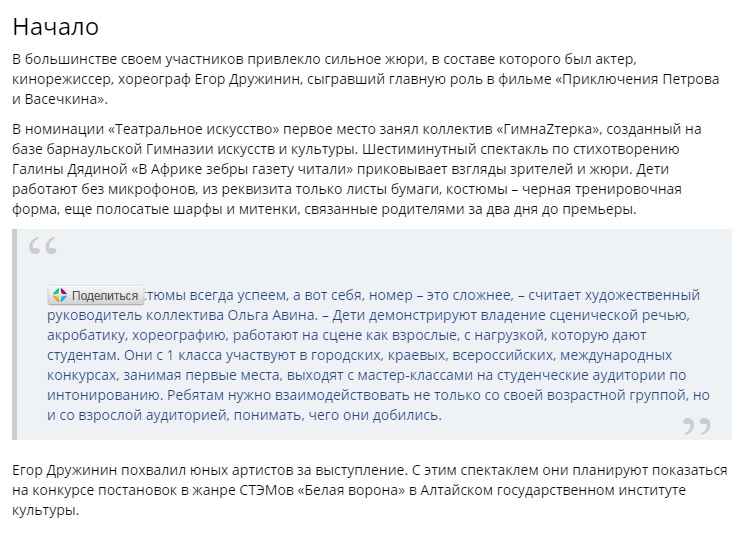 В Всероссийском конкурсе детского и юношеского творчества "РАДУГА ТАЛАНТОВ" г. Барнаул в номинации «Театральное искусство» первое место занял театрально - вокальный коллектив «ГимнаZтерка». А открыть Гала - концерт такого творческого мероприятия выпало за честь Образцовому хореографическому ансамблю "Карамель"